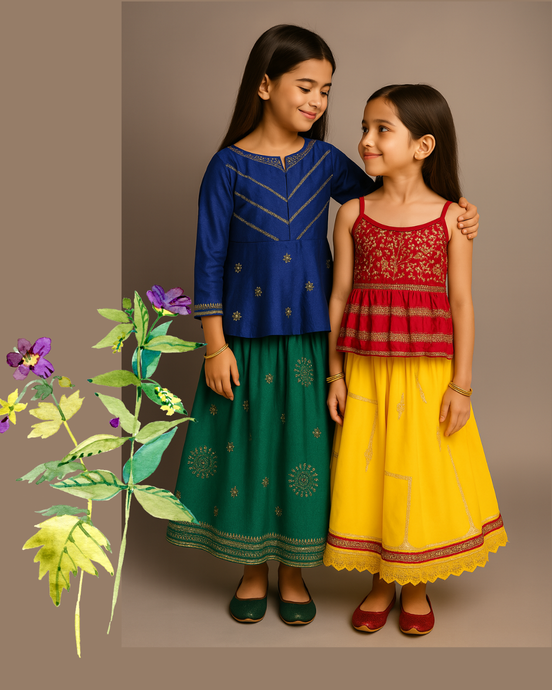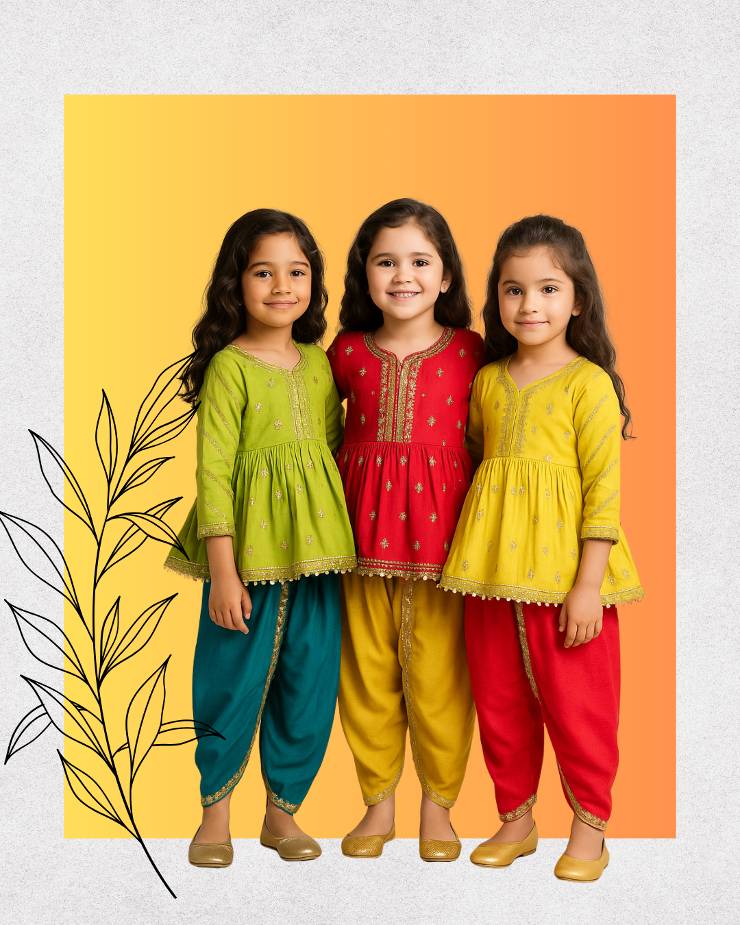 "A joyful blend of vibrant colors, playful twirls, and festive sparkle. Perfect for little ones to shine bright at every celebration, these outfits turn every occasion into a memory filled with giggles, dancing, and delight."