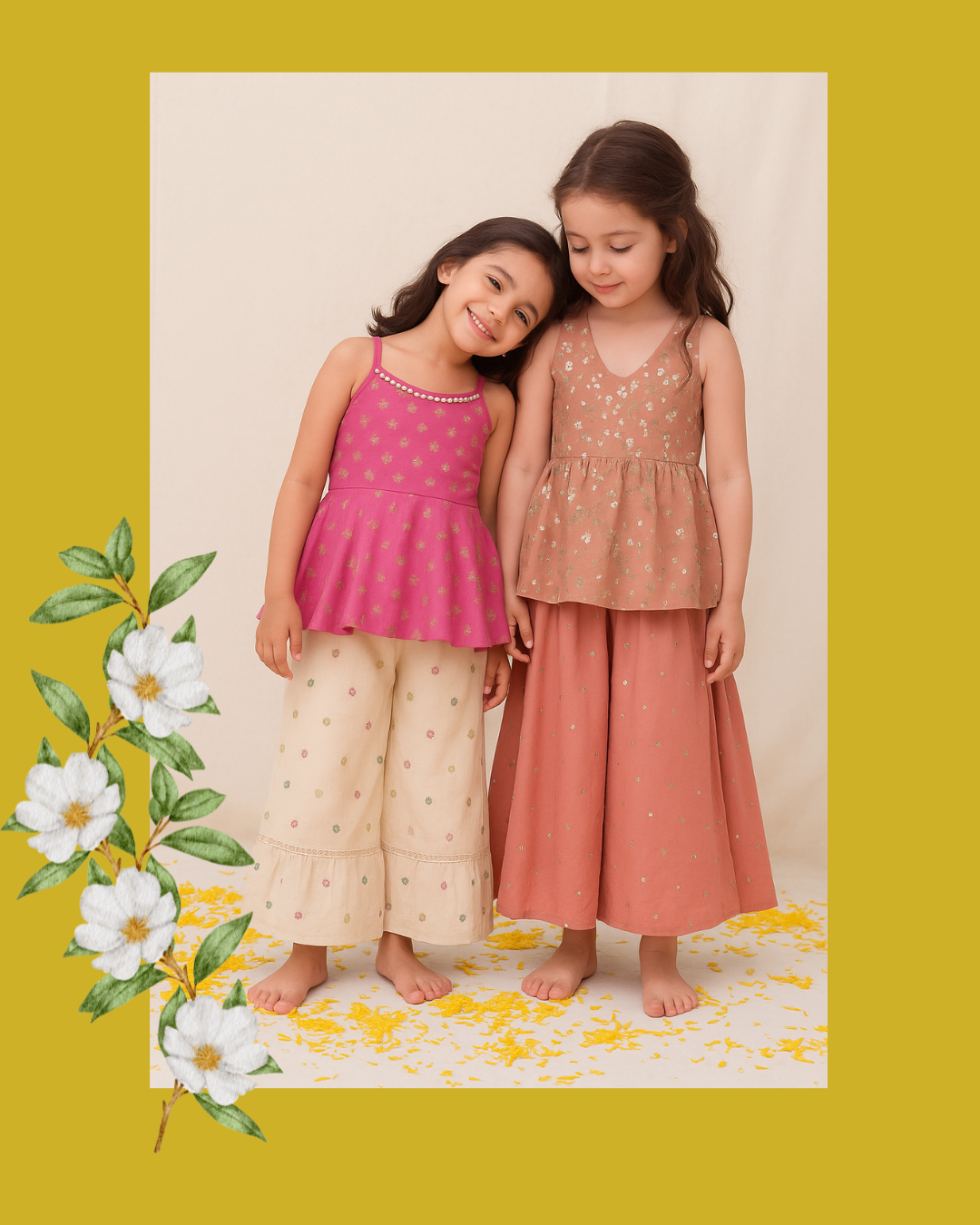 A breezy blend of charm and comfort, perfect for little ones to move, play, and celebrate in style. With flowing palazzos and chic tops in vibrant hues,